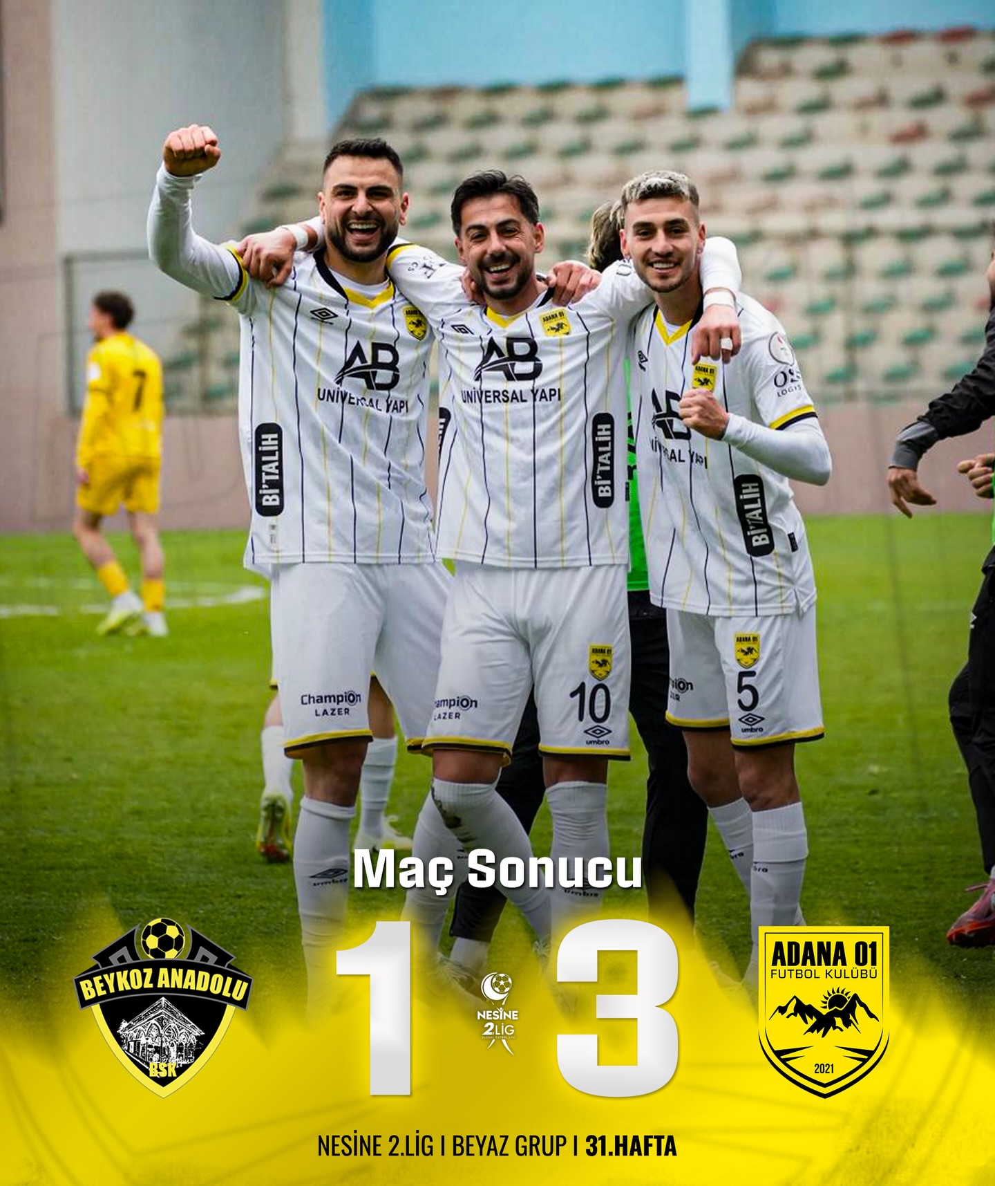 Adana 01 FK, Nesine 2.Lig’in 31. haftasında Beykoz Anadolu Spor’u deplasmanda 3-1 mağlup ederek kalitesini ve gücünü bir kez daha ortaya koydu...