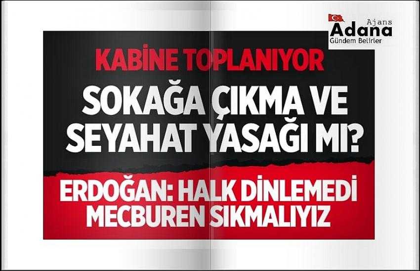 Cumhurbaşkanı Recep Tayyip Erdoğan Cuma namazı çıkışı, “Ne yazık ki uyarılarımıza halkımız ciddi manada dikkat etmedi. Mecburen şimdi tekrar işi sıkmak zorundayız” dedi. Bugünkü kabineden sokağa çıkma ve 65 yaş üstü yasağı gibi yasakların çıkıp çıkmayacağı merak ediliyor.