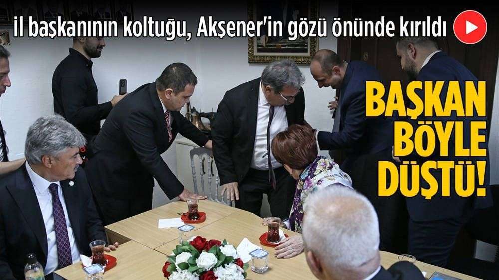İYİ Parti Adana İl Başkanı Göktürk Boyvadaoğlu Meral Akşener'in yanında otururken koltuktan düştü