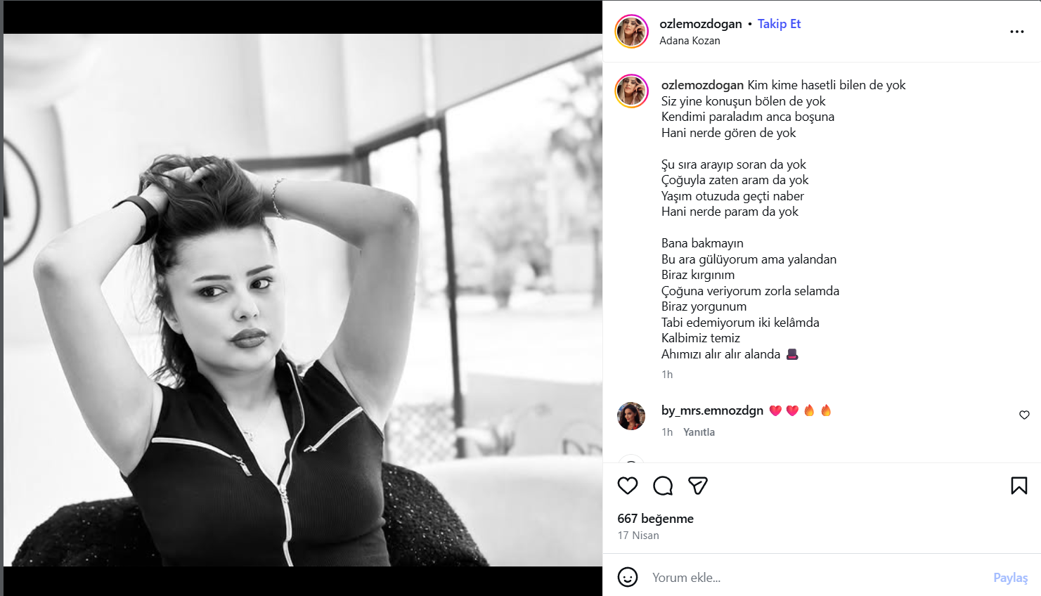 Kozan'ın cemiyet hayatında tanınan ve bilinen ismi ÖZLEM ÖZDOĞAN kendisine ait sosyal hesabından bir paylaşımda bulunarak çok ağır bir sitem içeren açıklama yaptı...