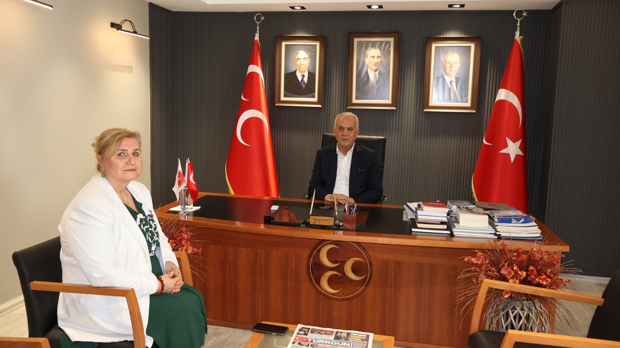 MHP Adana İl Başkanı Yusuf Kanlı, MHP Lideri Devlet Bahçeli ile görüşmesinde kendisine tevdi edilen emir ve direktifleri kendisine ziyarette bulunan teşkilat üyeleri ve parti tabanına anlatmaya devam ediyor. Bu doğrultuda hergün MHP Adana İl Binasında ziyaretleri kabul eden Kanlı'ya adeta ziyaretçi akını yaşanıyor...