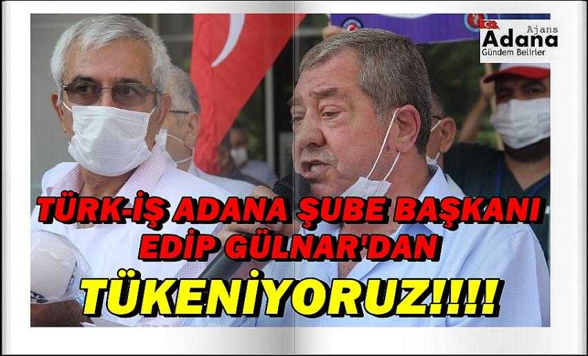 Türk-İş'e bağlı, Türkiye Sağlık İşçileri Sendikası Adana Şube başkanı Mehmet Demirci, "Covid-19'dan dolayı pandemi risk primi ek ödeme hakkımızdır. İnsanca yaşamak istiyoruz. Sesimize kulak verin tükeniyoruz" dedi.