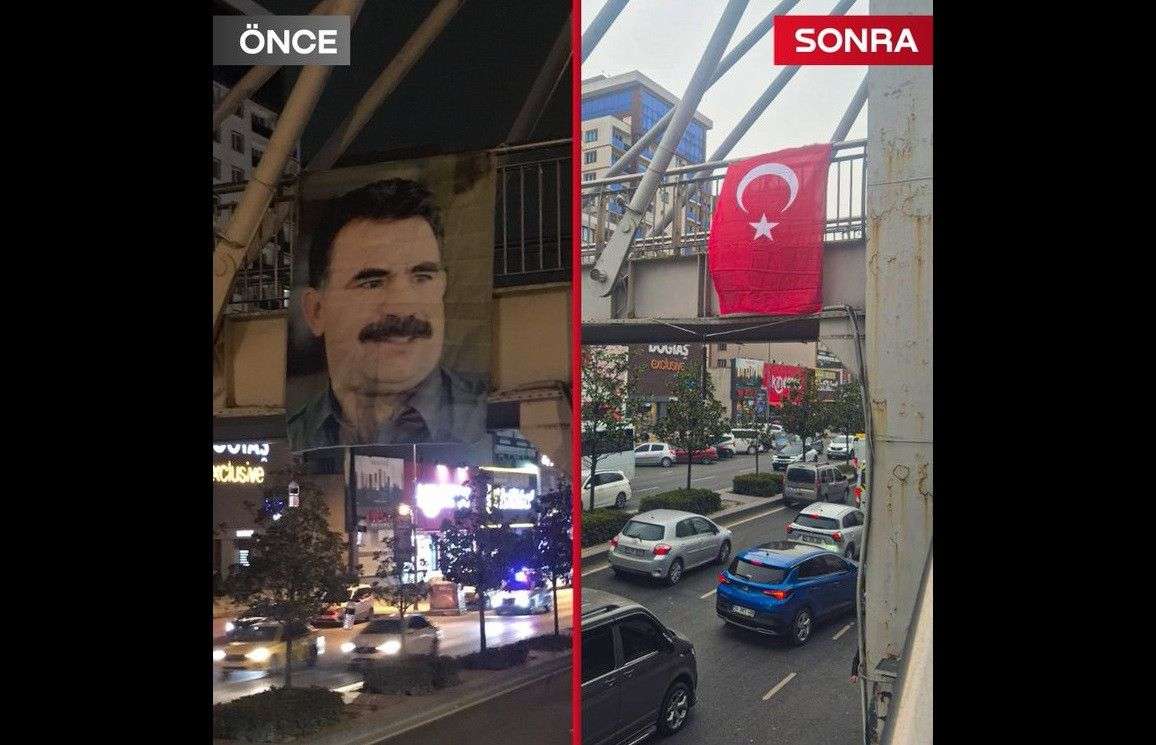 Geçtiğimiz gün Esenyurt’ta bir üst geçite bebek katili teröristbaşı Abdullah Öcalan’ın paçavrası asılmıştı.